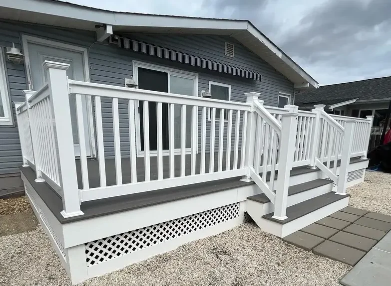 ➡️ UPGRADE: Installing new, modern, low-maintenance materials like composite or PVC decking and updated aluminum or cable railings to enhance aesthetics, safety, and durability.